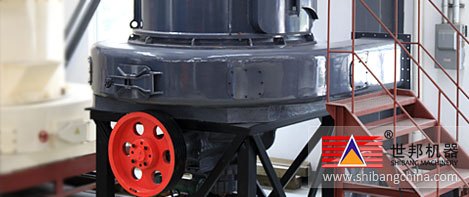 主(zhu)機工作過程是電(dian)動(dong)機通過一副(fu)三角帶(dai)(dai)(dai)輪帶(dai)(dai)(dai)動(dong)橫(heng)(heng)向傳動(dong)軸轉(zhuan)(zhuan)(zhuan)動(dong),橫(heng)(heng)向傳動(dong)軸再通過另一端(duan)(duan)的(de)(de)(de)(de)錐(zhui)齒輪帶(dai)(dai)(dai)動(dong)主(zhu)機主(zhu)軸,主(zhu)軸的(de)(de)(de)(de)上(shang)端(duan)(duan)連接著(zhu)磨(mo)輥(gun)吊架(jia),磨(mo)輥(gun)裝置通過橫(heng)(heng)擔軸吊裝在磨(mo)輥(gun)吊架(jia)上(shang)并形(xing)成(cheng)擺動(dong)支(zhi)點(dian),其不僅圍繞軸回轉(zhuan)(zhuan)(zhuan),同時在離心力的(de)(de)(de)(de)作用下磨(mo)輥(gun)沿著(zhu)磨(mo)環(huan)內圓滾動(dong),磨(mo)輥(gun)本身因摩擦(ca)作用而自轉(zhuan)(zhuan)(zhuan)。磨(mo)輥(gun)吊架(jia)下端(duan)(duan)裝有鏟(chan)(chan)刀(dao)(dao)架(jia),鏟(chan)(chan)刀(dao)(dao)架(jia)的(de)(de)(de)(de)下法蘭上(shang)裝有傾(qing)斜的(de)(de)(de)(de)鏟(chan)(chan)刀(dao)(dao),鏟(chan)(chan)刀(dao)(dao)的(de)(de)(de)(de)前(qian)端(duan)(duan)接近(jin)磨(mo)室(shi)襯板,后端(duan)(duan)位于磨(mo)輥(gun)與磨(mo)環(huan)形(xing)成(cheng)的(de)(de)(de)(de)楔形(xing)間(jian)隙內,鏟(chan)(chan)刀(dao)(dao)與磨(mo)輥(gun)同轉(zhuan)(zhuan)(zhuan)過程中把物料鏟(chan)(chan)拋喂入(ru)磨(mo)輥(gun)磨(mo)環(huan)之間(jian)而被(bei)擠壓、碾碎。從磨(mo)環(huan)底部進入(ru)磨(mo)腔的(de)(de)(de)(de)氣流將小(xiao)顆粒粉(fen)料帶(dai)(dai)(dai)入(ru)選粉(fen)機,由此而達到(dao)制粉(fen)目的(de)(de)(de)(de)。
