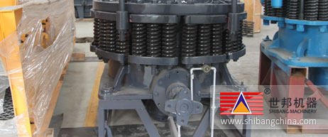彈簧破(po)(po)碎(sui)機工作時,電動(dong)機通過(guo)水(shui)平軸(zhou)和一對傘齒輪(lun)帶動(dong)偏心軸(zhou)套旋轉,破(po)(po)碎(sui)圓(yuan)錐軸(zhou)心線在(zai)偏心軸(zhou)套的(de)迫動(dong)下(xia)做旋擺運(yun)動(dong),使得(de)破(po)(po)碎(sui)壁表面(mian)(mian)時而(er)靠近又時而(er)離開軋臼(jiu)壁的(de)表面(mian)(mian),從而(er)使礦石在(zai)破(po)(po)碎(sui)腔內(nei)不斷地(di)受到擠壓和彎曲而(er)被破(po)(po)碎(sui)。